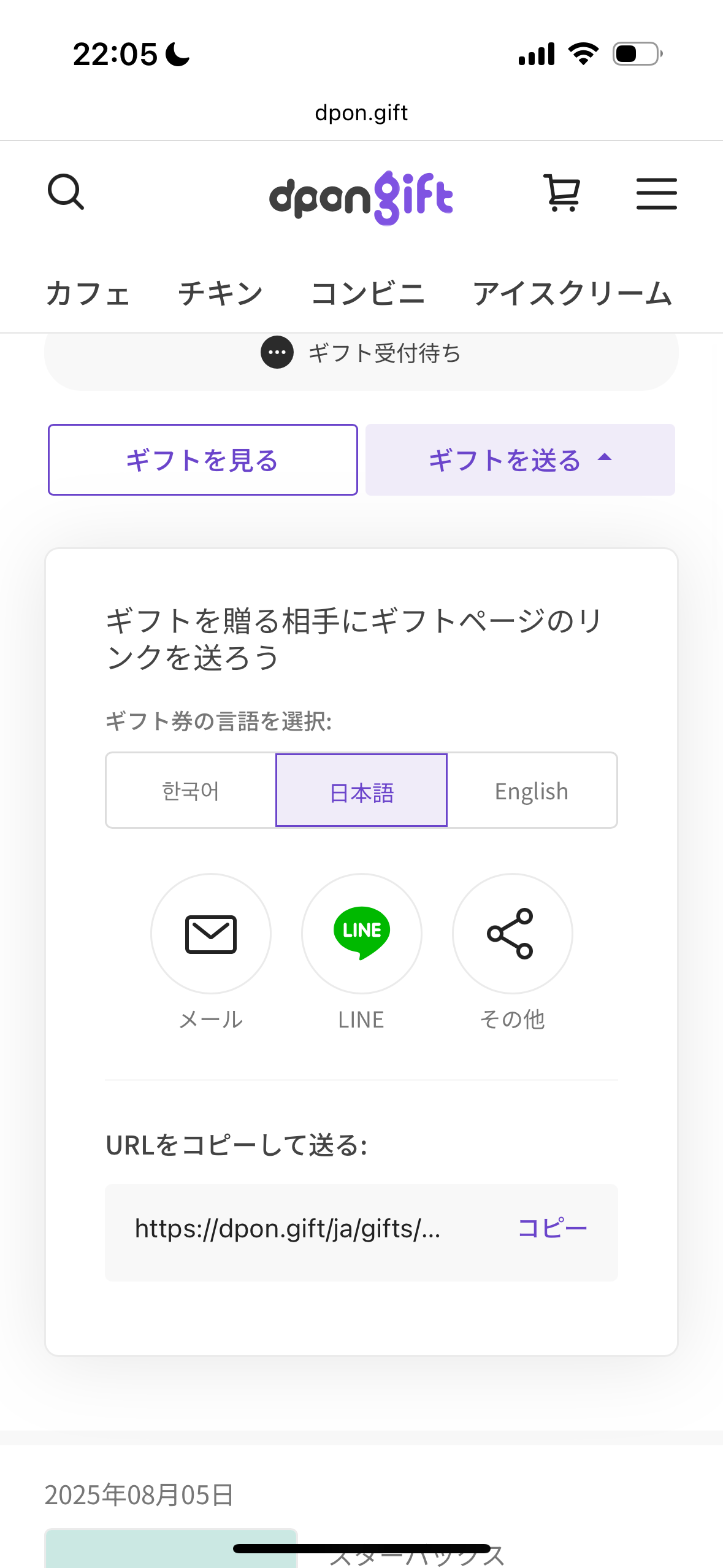 dpon giftでスタバギフトを送る方法